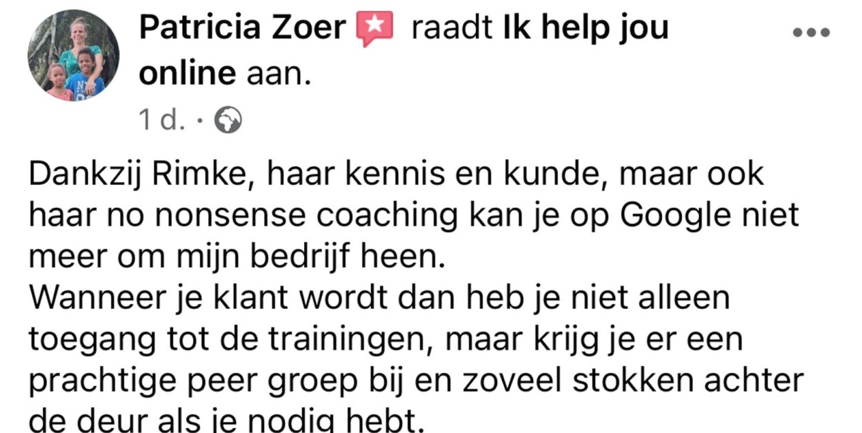 Dan sta ik graag voor je klaar op rimke@ikhelpjouonline.nl! Maar de enige échte vraag is: ben jij klaar om actie te ondernemen en jouw online vindbaarheid voor nieuwe klanten flink te vergroten?