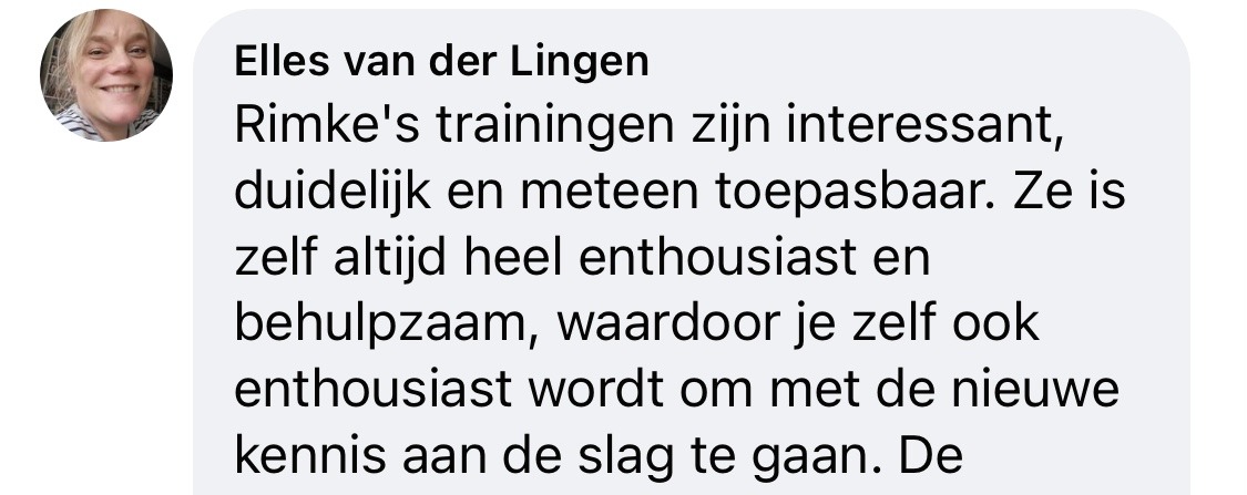 Dit is wat mijn klanten zeggen over de trainingen die ze bij mij volgen: