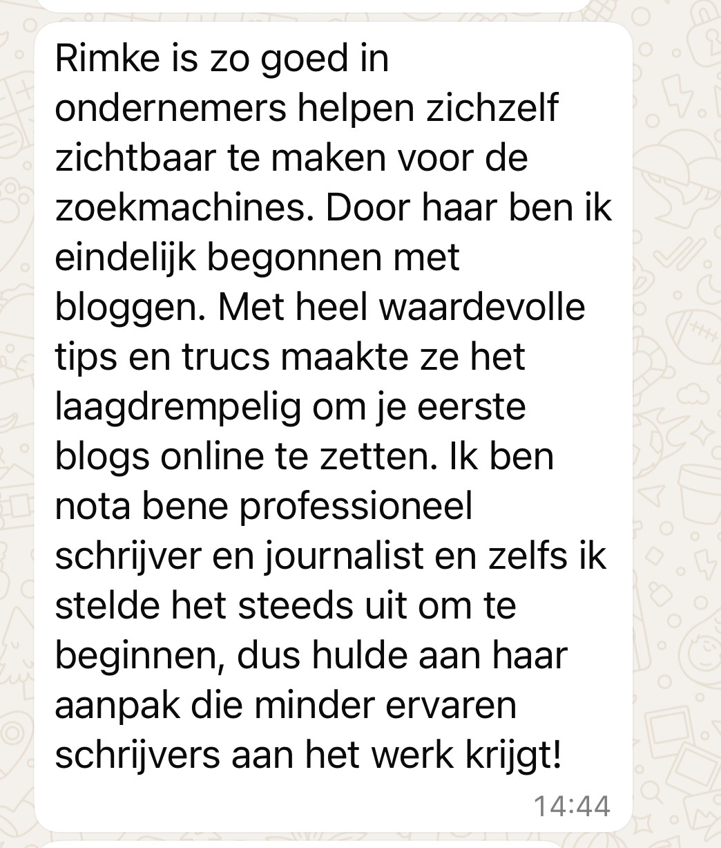 Zeker. Wat ik je leer tijdens Van tijdelijke posts naar tijdloze blogs kun je ook toepassen voor het schrijven van nieuwe blogs waarvoor je niet een social media post als basis gebruikt.